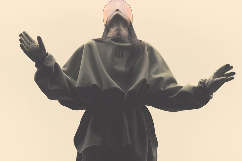 Photographed by artist Nadav Kander, the campaign carries subtle biblical undertones, from an image of a model with arms outstretched, visor on towards the sky as if mimicking a painting depicting Jesus Christ to an accompanying film, where a series of models are shown walking on water towards three jagged mountains in the shape of The Three Stripes. “The house is built to mirror the very nature and design of the highest being,” Lorenzo added, “where there is both unity and diversity in the trinity.”