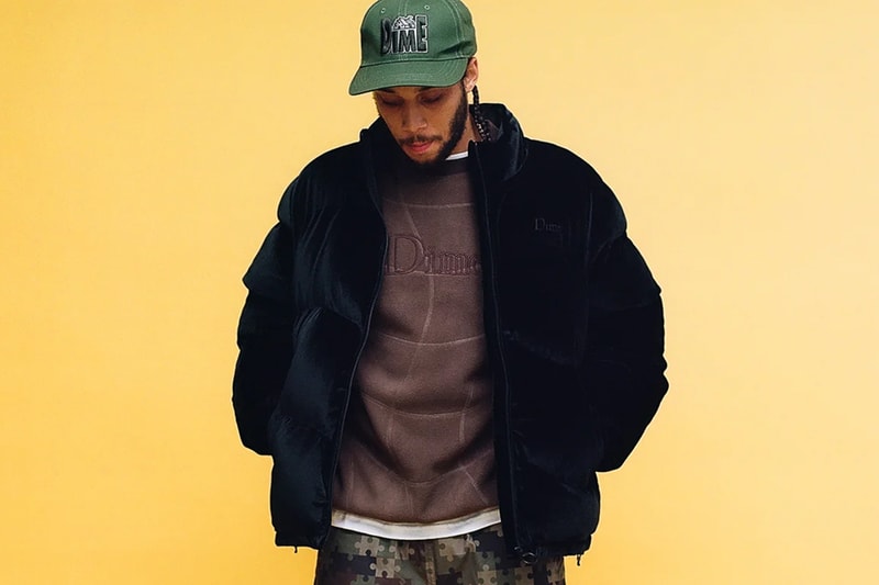 The label readied daily essentials such as hoodies, shirts, and tees featuring a new round of graphics as well as remastered versions of the classic Dime branding. The holiday motif extends to t-shirts with snow globes and candied cane Dime lettering. Rounding out the selection are accessories fleece gloves, caps, scarves, beanies, classic baggy denim jeans, relaxed cord pants and even a scented candle to set the mood this holiday.