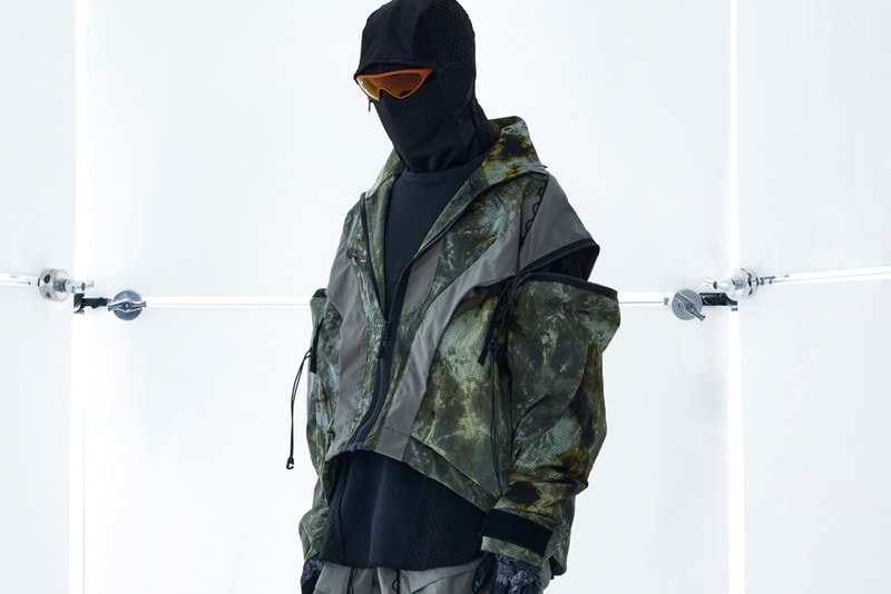 Key styles in the range include include coats that can be transformed into short jackets, wide trousers with convertible military slot-buttons, paratrooper cargo pants with center zippers for transformation, detachable waist pouches transformable trouser, and asymmetrical sweaters adorned with digital prints and distressed details.